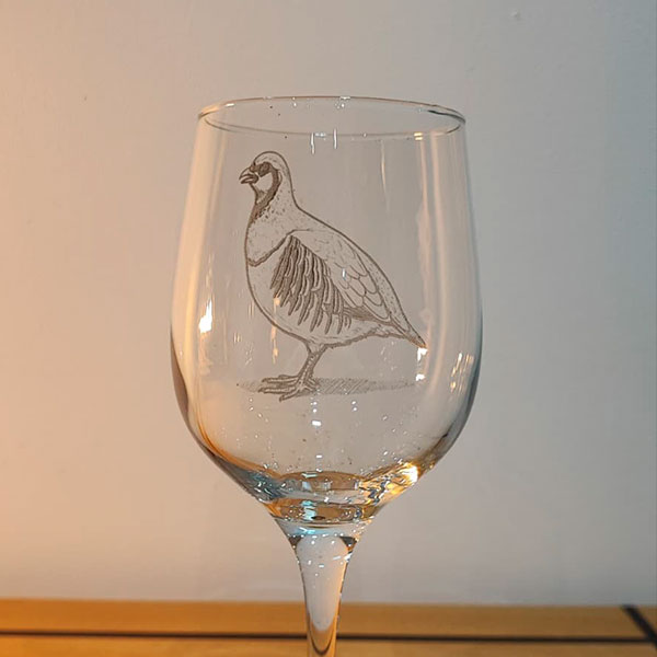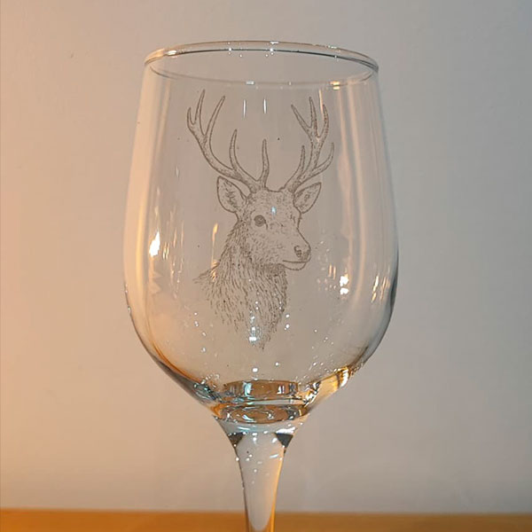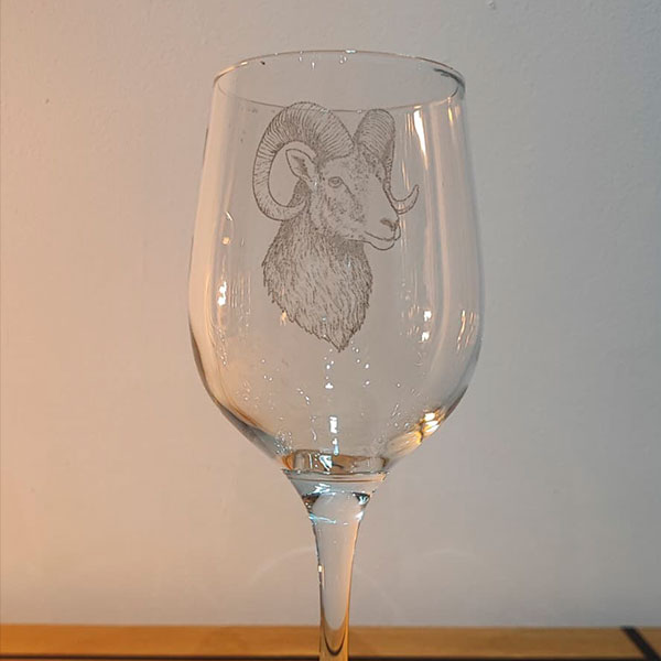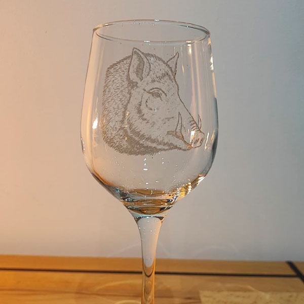 Copas personalizadas con ilustraciones de animales de caza grabadas a láser.