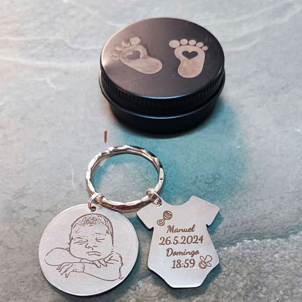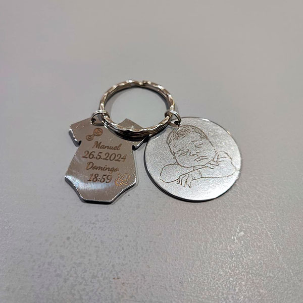 Personalizado con foto en el anverso, y la frase que más te guste en el reverso en la pieza redonda.