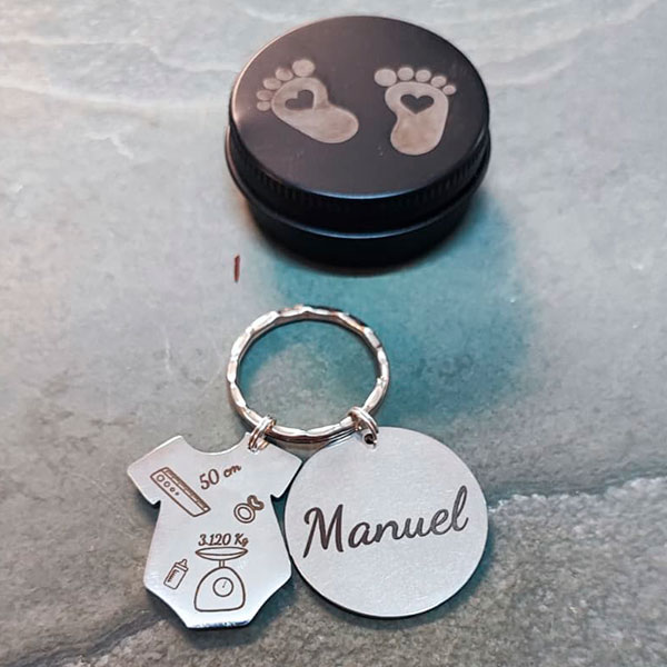 Personalizado con los datos del bebé en la pieza con forma de body.