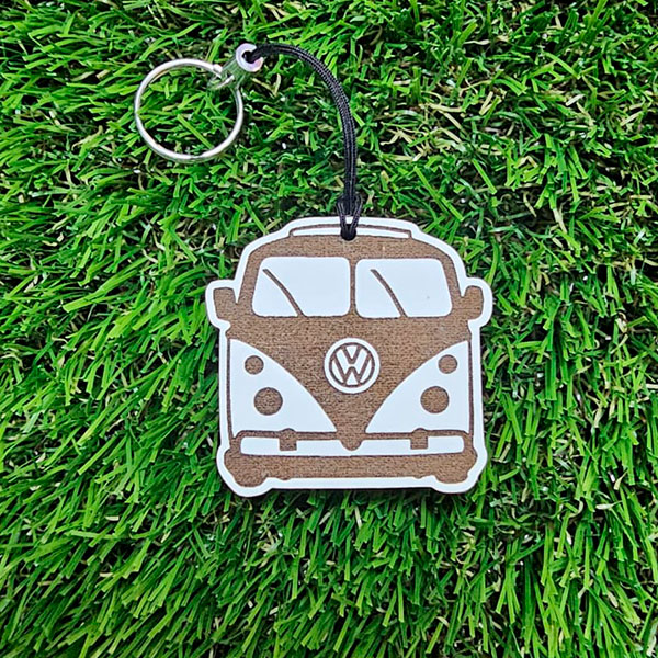 Llaveros cortados y grabados a láser con formas variadas. ¡Escoge el que más te guste!