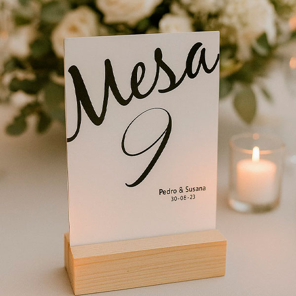 Personalizable con vuestros nombres y/o fecha en tanto en el tablero, como en el pie, a vuestra elección.