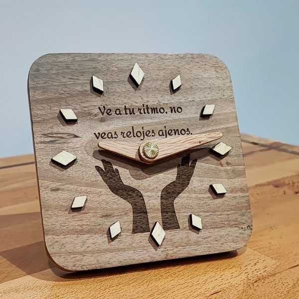 Relojes de nesa personalizados en diferentes maderas y posibilidad de múltiples formas.